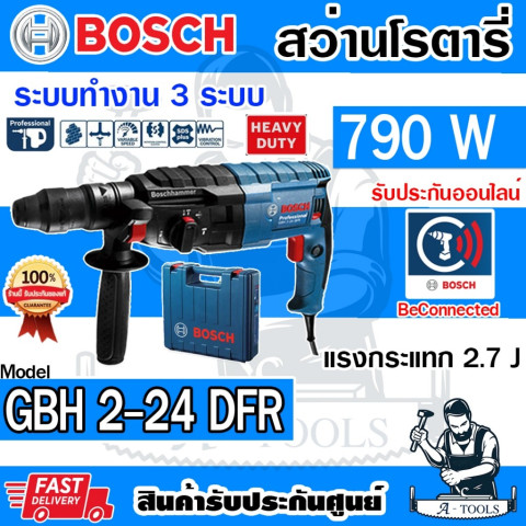 BOSCH สว่านโรตารี่ รุ่น GBH 2-24 DFR (รหัส 06112730K0) กำลัง 790 วัตต์ เจาะคอนกรีตได้ถึง 24 มม. รองรับงานช่างมืออาชีพและงานติดตั้งที่ต้องการความเร็วและความทนทาน มาพร้อมระบบการทำงาน 3 ระบบ (เจาะ / เจาะกระแทก / สกัด) และจุดเด่นคือ ถอดหัวเปลี่ยนได้ ใช้งานคล่องตัว ปรับหมุนซ้าย-ขวา เหมาะสำหรับงานเจาะผนัง เดินสาย ติดตั้งอุปกรณ์ และงานสกัดเบา ๆ ได้ในเครื่องเดียว