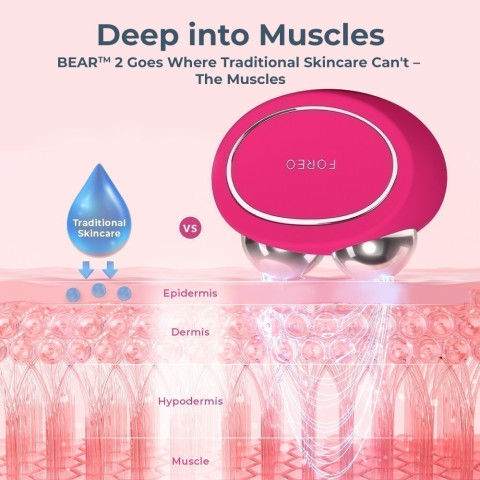 FOREO BEAR 2 Evergreen เครื่องยกกระชับและเก็บกรอบหน้าอัจฉริยะ สีเขียวเข้ม ที่ออกแบบมาเพื่อ “ยก-เฟิร์ม-ลดริ้วรอย” ได้อย่างเห็นผลในเวลาอันรวดเร็ว ด้วยเทคโนโลยี Microcurrent (กระแสไฟฟ้าระดับต่ำ) รุ่นใหม่ที่มีให้เลือกถึง 4 ประเภท พร้อมระบบป้องกันการช็อตผิว Anti-shock system 2.0 ให้คุณดูแลผิวหน้าและลำคอได้อย่างมั่นใจ เพียง 2 นาทีต่อครั้ง