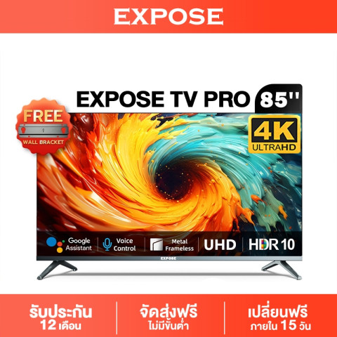EXPOSE TV PRO สมาร์ททีวี 4K WiFi (มีให้เลือก 55/65/75/85 นิ้ว) ราคา ฿23,219.57 เติมความบันเทิงให้บ้านคุณด้วยภาพคมชัดระดับ 4K พร้อมระบบ Android 12.0 ใช้งานลื่น ดูหนัง ฟังเพลง เล่นแอปได้ครบในเครื่องเดียว รองรับ Netflix / YouTube และแอปยอดนิยมอีกมากมาย เหมาะทั้งดูทีวีทั่วไป ดูสตรีมมิ่ง และเชื่อมต่ออุปกรณ์เกม/กล่องต่าง ๆ แบบครบจบ