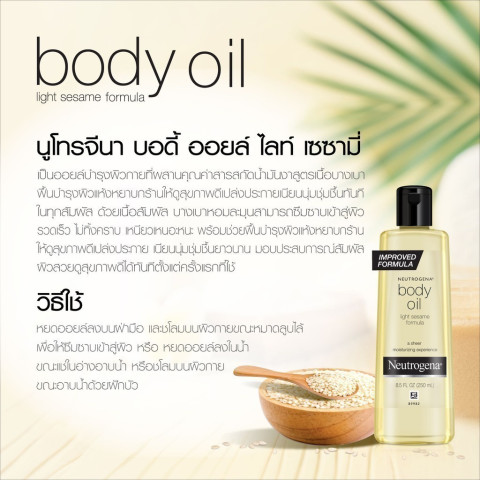 เติมความชุ่มชื้นแบบบางเบาแต่ล้ำลึก ให้ผิวดูนุ่มเนียน เปล่งประกาย และสวยสุขภาพดีในทุกวันด้วย Neutrogena Body Oil Light Sesame