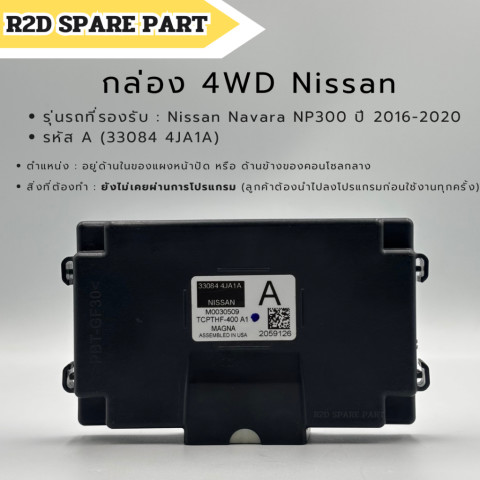 กล่อง 4WD Nissan Navara NP300 ปี 2016-2020 รหัส A (33084 4JA1A) งานใหม่ 100% สำหรับผู้ที่ต้องการอะไหล่ทดแทนตรงรุ่น เพื่อให้ระบบขับเคลื่อน 4 ล้อทำงานได้อย่างมั่นใจ เหมาะสำหรับรถ Navara NP300 ช่วงปี 2016-2020 โดยสินค้ายังไม่เคยผ่านการโปรแกรมมาก่อน ผู้ซื้อจำเป็นต้องนำไปลงโปรแกรมก่อนใช้งานทุกครั้ง