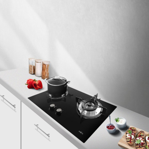MEX รุ่น V4731M เตาแก๊สฐานกระจกขนาด 73 ซม. ดีไซน์สวยทันสมัย ติดตั้งแบบฝังเคาน์เตอร์ ช่วยให้ครัวดูเรียบหรูและทำความสะอาดง่าย มาพร้อม หัวเตาทองเหลือง 2 หัว เปลวไฟ 3 ชั้นทั้งซ้ายและขวา ให้ความร้อนแรงสม่ำเสมอ เหมาะทั้งผัดไฟแรง ต้มแกง หรือทำอาหารหลายเมนูพร้อมกันได้อย่างคล่องตัว ในราคา 6,000.00 บาท