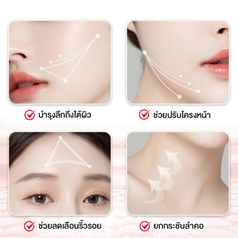 ช่วยยกกระชับ ลดความหย่อนคล้อยของใบหน้า ลำคอ และมือ พร้อมช่วยให้กล้ามเนื้อบริเวณที่นวดดูเฟิร์มขึ้น