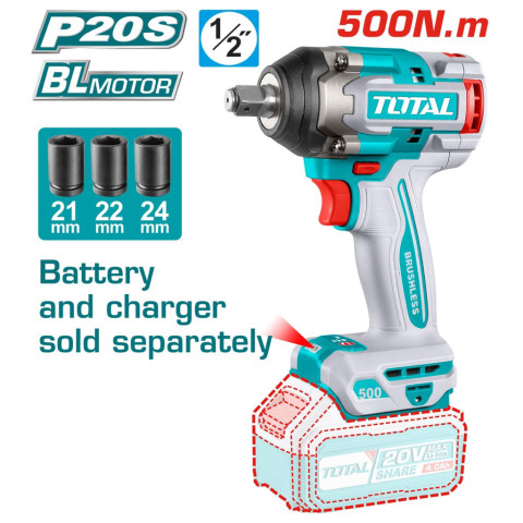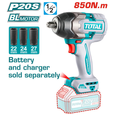 TOTAL ชุดบล็อกแบตเตอรี่ไร้สาย 20V รุ่น TIWLI2001 / TIWLI20401(TIWLI2040) / TIWLI20501(TIWLI2050) / TIWLI20851(TIWLI2085) คือชุดบ๊อกซ์กระแทกไร้สายสำหรับงานช่างที่ต้องการแรงบิดสูง ถอด-ขันน็อตล้อ งานซ่อมบำรุง และงานประกอบทั่วไป ใช้มอเตอร์ Brushless ทนทาน แรงดี ประหยัดพลังงาน พร้อมไฟ LED ช่วยส่องสว่างขณะทำงาน