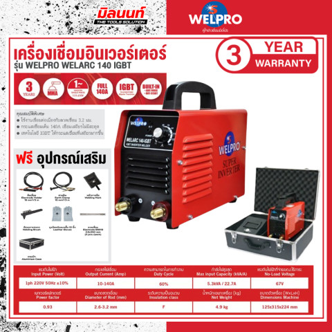 WELPRO ARC 140 IGBT ตัวจบสำหรับงานเชื่อมที่ต้องการเครื่องเล็กแรง เชื่อมลื่น เสถียร ใช้งานคล่อง พร้อมอุปกรณ์ครบชุด เปิดกล่องพร้อมลุยงานได้ทันที