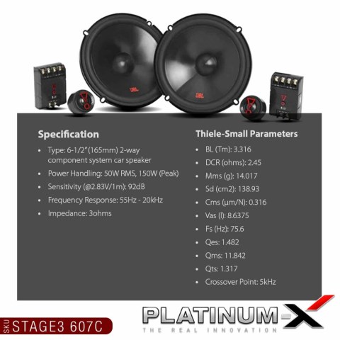 JBL ลำโพงรถยนต์ 6.5 นิ้ว 2 ทาง / แกนร่วม (1 คู่) รุ่น STAGE2 / STAGE3 ราคา 4,482.00 บาท