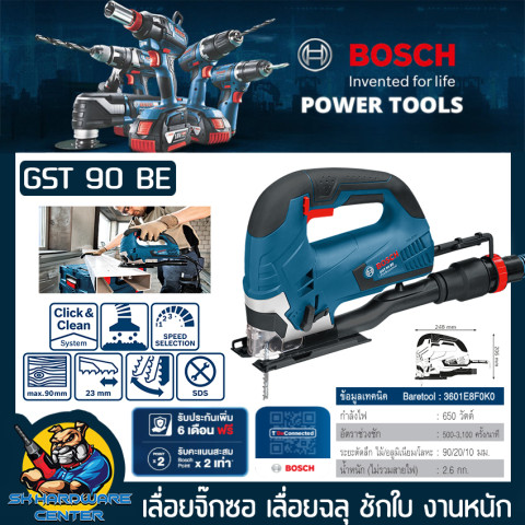 เลื่อยจิ๊กซอไฟฟ้า BOSCH รุ่น GST 90 BE เครื่องมือสำหรับงานฉลุไม้และงานตัดที่ต้องการความแม่นยำ รองรับงานหนักด้วยมอเตอร์กำลังสูง 650 วัตต์ ปรับความเร็วได้ตั้งแต่ 500–3,100 ครั้ง/นาที ให้ตัดได้ลื่นไหลทั้งงานไม้ อลูมิเนียม และโลหะ เหมาะทั้งงานช่างมืออาชีพและงาน DIY ที่ต้องการผลงานเรียบสวย
