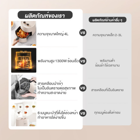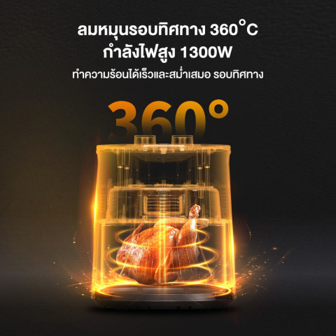 ● ลมหมุนรอบทิศทาง 360°C : ความร้อนหมุนเวียน ทำอาหารได้เร็วขึ้น สุขภาพดี