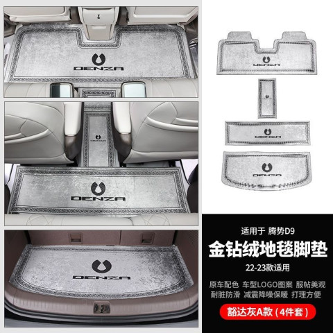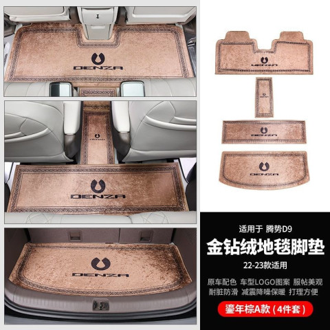 พรมแถวกลาง BYD Denza D9 2024/2025 Gold Diamond (ขนแกะสไตล์พรม) ยกระดับห้องโดยสารให้หรูหรา นุ่มสบาย และดูเรียบร้อยเหมือนงานติดรถ ด้วยวัสดุ “กำมะหยี่เพชรทอง” ที่ให้ผิวสัมผัสนุ่มแน่น ช่วยซับแรงกระแทก ลดเสียงรบกวน และยังกันลื่นได้ดี เหมาะสำหรับรถ Denza D9 แบบ 7 ที่นั่ง ที่ต้องการความพรีเมียมในทุกการเดินทาง