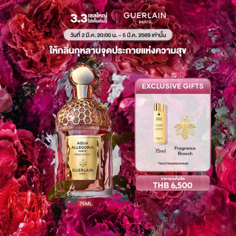 พิเศษยิ่งขึ้นในแคมเปญนี้ เมื่อซื้อ [3.3 Exclusive | 2 (2 ทุ่ม) - 5 มี.ค. 2569 Only] GUERLAIN Aqua Allegoria Forte Rosa Rossa Eau de Parfum ในราคาพิเศษ 6,200 บาท และชำระเงินเสร็จสมบูรณ์ภายในช่วงเวลาที่กำหนด รับทันทีของขวัญสุดลิมิเต็ด FRAGRANCE DIFFUSING BROOCH (เข็มกลัดกระจายกลิ่นหอม) ที่ช่วยให้คุณพกพาเสน่ห์แห่งกลิ่นหอมไปได้ทุกที่ ทั้งติดที่ปกเสื้อ เสื้อสูท ผ้าพันคอ หรือกระเป๋า เพิ่มความหรูหราให้ลุคของคุณในทุกวัน