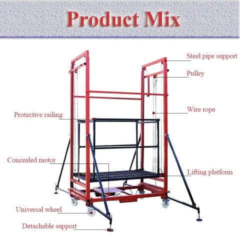 เพิ่มประสิทธิภาพงานก่อสร้าง งานซ่อมบำรุง และงานติดตั้งในที่สูงให้ปลอดภัยและสะดวกยิ่งขึ้นด้วย แท่นยกนั่งร้านไฟฟ้า ลิฟท์พับรีโมทคอนโทรลอัตโนมัติ Electric lifting scaffolding แท่นยกอเนกประสงค์ที่ออกแบบมาเพื่อรองรับการทำงานระดับมืออาชีพ รองรับน้ำหนักได้สูงถึง 500 กก. พร้อมระบบควบคุมไฟฟ้าและรีโมทคอนโทรลใช้งานง่าย