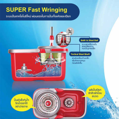 Poly-Brite โพลี-ไบรท์ ชุดถังปั่น รุ่นเฮอร์ริเคน ม็อบถังปั่นพร้อมไม้ถูพื้น “ปั่นลื่น เบาแรง” ช่วยให้การถูพื้นสะอาดไวขึ้น ทั้งปั่นเปียกและปั่นแห้งในถังเดียว ตอบโจทย์บ้าน คอนโด ร้านค้า หรือพื้นที่ที่ต้องการความสะอาดแบบมืออาชีพในทุกวัน