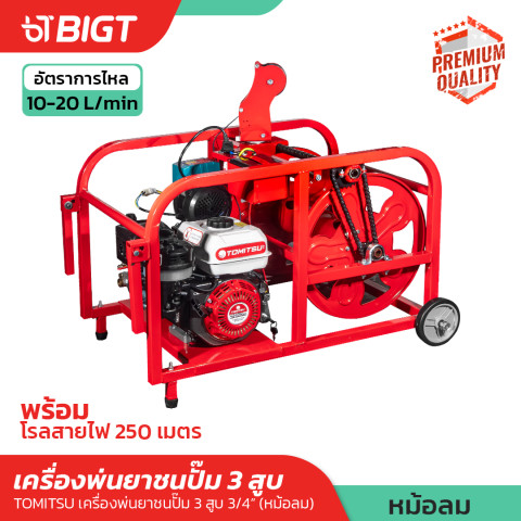 เครื่องพ่นยาปั้ม 3 สูบ 3/4'' Tomitsu (หม้อลม) รุ่นพิเศษ พร้อมโรลสายไฟ 250 เมตร ตัวช่วยงานพ่นยา/ฉีดยาที่ให้แรงดันสูง สม่ำเสมอ ทำงานได้ต่อเนื่อง เหมาะกับงานเกษตรและงานดูแลพื้นที่ขนาดใหญ่ ใช้งานสะดวกด้วยโรลสายไฟยาวพิเศษ ลดการย้ายจุดต่อไฟ เพิ่มความคล่องตัวในการทำงาน