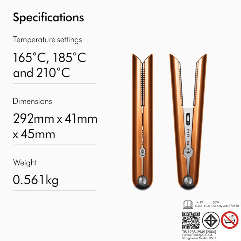 Dyson Corrale™ straightener (Copper/Nickel) เครื่องหนีบผมสีคอปเปอร์สุดพรีเมียม ที่ช่วยให้ผมตรงสวยเงางามด้วย “แผ่นความร้อนแบบโค้งงอได้” รวบผมให้เข้าที่ตั้งแต่ครั้งแรก ลดการพึ่งพาความร้อนสูง พร้อมขอบทัวร์มาลีนช่วยลดไฟฟ้าสถิต ให้ผมชี้ฟูน้อยลง ดูเรียบลื่นเป็นธรรมชาติ เหมาะทั้งการหนีบตรงและทำลอนปลายแบบมืออาชีพ