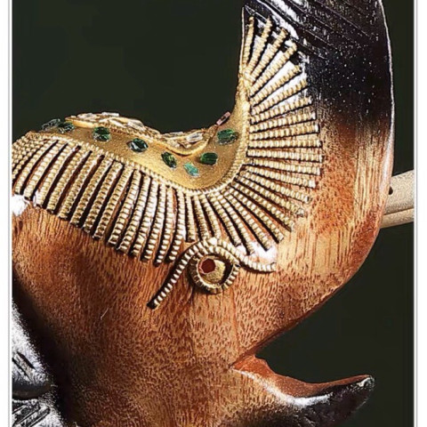 วัสดุ: ไม้จามจุรี (ฉำฉา) + งานเดินเส้น + ทองคำเปลว + กระจกหลากสี