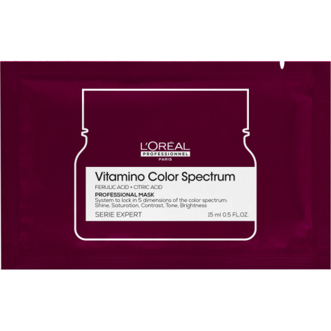 [สินค้าสมนาคุณงดจำหน่าย] SERIE EXPERT VITAMINO COLOR SPECTRUM MASQUE มาส์กฟื้นบำรุงผมทำสี ขนาด 15ml จาก L’Oréal Professionnel Paris ทางเลือกสำหรับผู้ที่ต้องการดูแลเส้นผมหลังทำสีให้ดูนุ่มลื่น เงางาม และมีชีวิตชีวา เหมาะอย่างยิ่งสำหรับพกพา ใช้ลองก่อนซื้อขนาดจริง หรือใช้เป็นทรีตเมนต์ฉุกเฉินในวันที่ผมแห้งเสีย