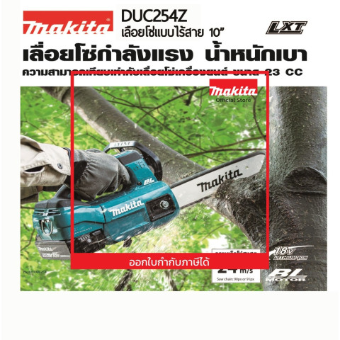 MAKITA เลื่อยโซ่ไร้สาย 18V บาร์ 10 นิ้ว (250 มม.) รุ่น DUC254Z (ไม่รวมแบตเตอรี่-แท่นชาร์จ)