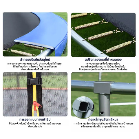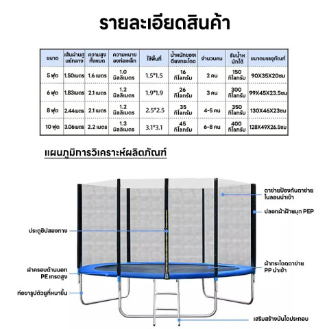 8 ฟุต: 244 × 210 ซม. น้ำหนักสินค้า 35 กก. เล่นได้หลายคน เด็ก ๆ กระโดดได้จุใจ