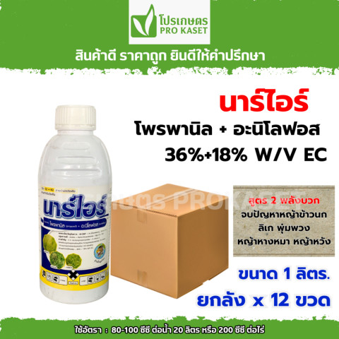 ยกลัง 12 ขวด นาร์ไอร์ ไร้หญ้า ขนาด 1 ลิตร สูตร 2 พลังบวก (โพรพานิล + อะนิโลฟอส) ตัวดังขายดี สำหรับชาวนาที่ต้องการ “ตัวจบ” ปัญหาหญ้าในนาข้าว โดยเฉพาะ หญ้าดื้อยา ช่วยคุมและฆ่าหญ้าได้ครอบคลุม ลดภาระการฉีดซ้ำ ให้แปลงข้าวสะอาด เดินงานต่อได้มั่นใจ