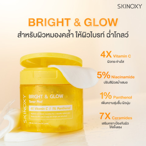 SKINOXY BRIGHT & GLOW TONER PAD (สีเหลือง) – “ล็อคผิวไบรท์ ฉ่ำโกลว์ ดูสุขภาพดี”