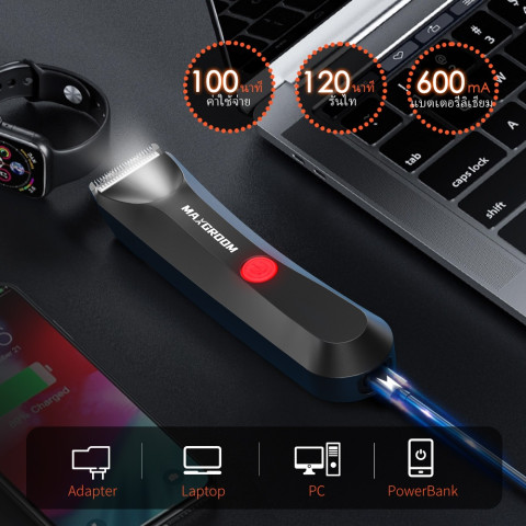 Maxgroom M-9087 เครื่องกำจัดขน/ปัตตาเลี่ยนไฟฟ้าพกพา ดูแลความเรียบเนียนได้อย่างมั่นใจ เหมาะสำหรับการโกนและเล็มขนตามร่างกายด้วยความอ่อนโยน พร้อมไฟ LED ช่วยส่องสว่างให้เห็นเส้นขนชัดขึ้น ลดโอกาสพลาดบริเวณสำคัญ ใช้งานได้ทั้งแบบแห้งและเปียกด้วยมาตรฐานกันน้ำ IPX7 พกพาสะดวก ชาร์จง่ายผ่าน USB Type‑C
