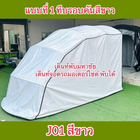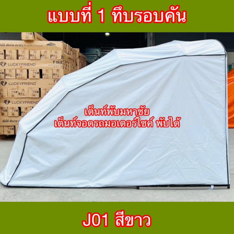 เต็นท์จอดรถมอเตอร์ไซค์พับได้ J04 รุ่นผ้าใบหนาพิเศษ ขนาด XXL สีขาว ออกแบบมาเพื่อคนรักรถที่ต้องการทั้งความสะดวกสบายและการปกป้องรถสุดที่รักแบบรอบด้าน เหมาะสำหรับจอดหน้าบ้าน ในโรงงาน หรือพื้นที่กลางแจ้ง ใช้งานง่าย พับเก็บได้ แข็งแรง ทนทาน ใช้งานได้นานหลายปี