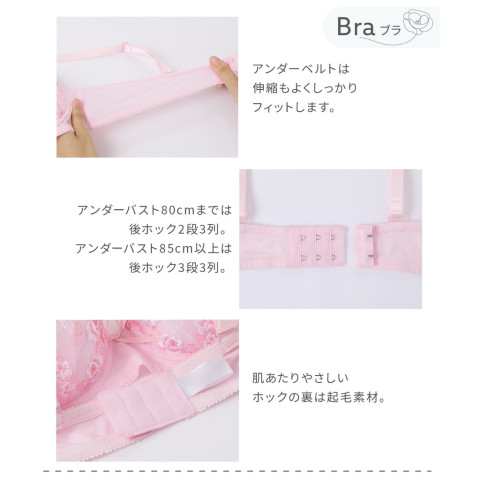 ทั้งเซ็ตประกอบด้วยบราและกางเกงในเข้าคู่กันถึง 5 ชุดเต็ม ดีไซน์ลายดอกไม้ปักลูกไม้ด้วยด้าย 2 สี ให้ลุคหรูหรา ดูแพงแบบผู้หญิงญี่ปุ่น ดีไซน์ทันสมัย ใส่แล้วรู้สึกพิเศษทุกครั้งที่สวม แม้จะเป็นวันธรรมดา