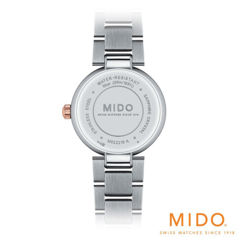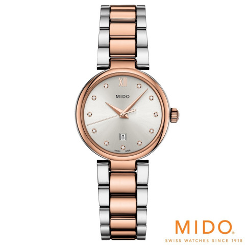 หน้าปัดประดับเพชรแท้ 11 เม็ด (0.033 ct) พร้อมใบรับรองจาก Mido ช่วยยกระดับให้ดูหรูหราเสมือนเครื่องประดับชั้นเยี่ยมกลไกควอตซ์สวิส ETA แม่นยำเชื่อถือได้