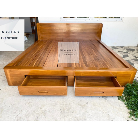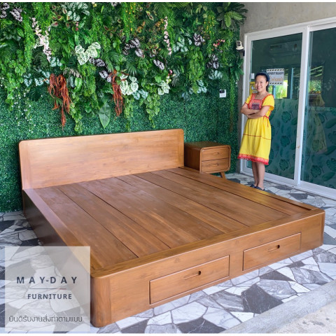 เตียงรุ่นนี้รองรับทั้งขนาด 5 ฟุต และ 6 ฟุตในราคาเดียว จึงตอบโจทย์ทั้งห้องขนาดเล็กและใหญ่ โครงสร้างแข็งแรง ทนการใช้งานระยะยาว ไม่โยก ไม่หักง่าย เคลือบเงาทั้งตัว จึงเช็ดทำความสะอาดง่าย ไม่อับชื้น ไม่เป็นรา และช่วยปกป้องเนื้อไม้ให้สวยนานยิ่งขึ้น