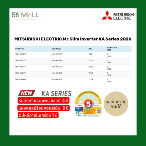 แอร์ผนัง MITSUBISHI ELECTRIC Mr.Slim INVERTER KA Series