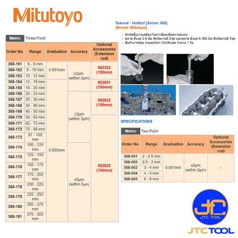 หากคุณต้องการเครื่องมือวัดรูในที่เชื่อถือได้ ใช้งานยาวนาน และให้ผลการวัดที่แม่นยำ Mitutoyo Holtest Series 368 รุ่น 368-163 คือทางเลือกที่ตอบโจทย์ทั้งด้านคุณภาพและความคุ้มค่า