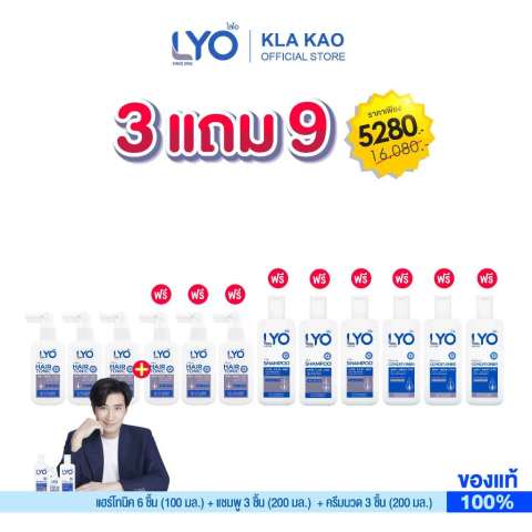 เปลี่ยนผมบาง ผมร่วง ให้กลับมาดกหนา แข็งแรง แบบคุ้มที่สุดด้วยเซ็ตจัดหนัก “ซื้อ 3 แถม 9” LYO แฮร์โทนิค 6 ชิ้น 100 มล. + แชมพู 3 ชิ้น 200 มล. + ครีมนวดผม 3 ชิ้น 200 มล. เซ็ตดูแลครบขั้นตอน ตั้งแต่ทำความสะอาด บำรุงเส้นผม ไปจนถึงฟื้นบำรุงรากผมและหนังศีรษะอย่างล้ำลึก ในราคาพิเศษเพียง 5,280 บาท (จากราคาปกติ 16,080 บาท) คุ้มค่าทั้งใช้เองระยะยาว และแบ่งให้คนที่คุณรักใช้ไปพร้อมกัน