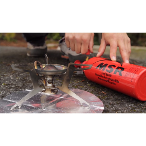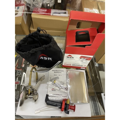 อุปกรณ์ในชุด: เตา MSR WhisperLite International, ปั๊มเชื้อเพลิง, บังลม, แผ่นสะท้อนความร้อน, ชุดอะไหล่ชิ้นส่วนขนาดเล็ก, คู่มือการใช้งาน, ถุง/กระเป๋าเก็บเตา
