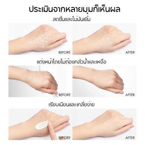 สามารถลงเมคอัพต่อได้ทันที หรือใช้เดี่ยว ๆ เพื่อผิวใสโกลว์แบบธรรมชาติ