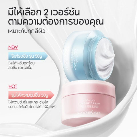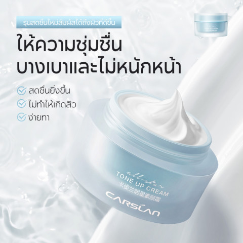 เผยผิวสว่างใส ฉ่ำน้ำ ดูสุขภาพดีในทันทีที่ใช้ด้วย CARSLAN ครีมหน้าใส เนื้อบางเบา 50g ครีมบำรุงผิวสูตรโทนอัพที่ช่วยให้ผิวหน้าดูไบรท์ขึ้นอย่างเป็นธรรมชาติ พร้อมมอบความชุ่มชื้นยาวนานตลอดวัน ใช้ได้ทั้งเป็นครีมบำรุงและเมคอัพเบสในขั้นตอนเดียว หมดปัญหาผิวหมองคล้ำ แต่งหน้ายาก หรือผิวแห้งไม่เรียบเนียน