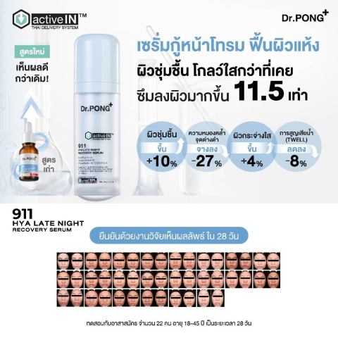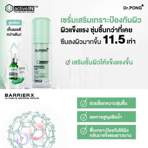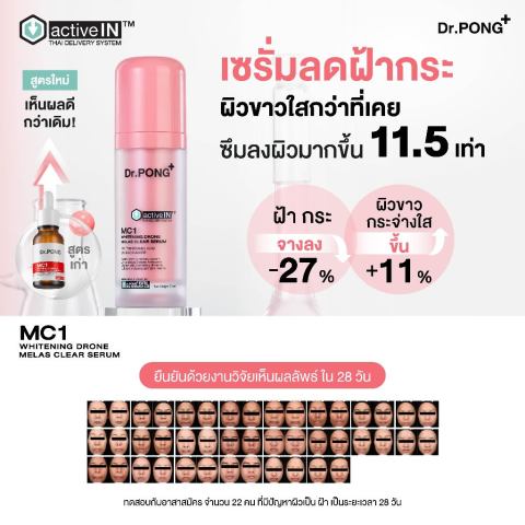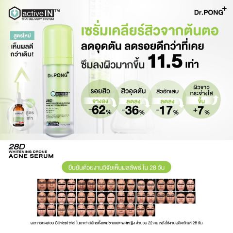รวมเซรั่มสูตรอัปเกรดใหม่! Dr.PONG activeIN™ Series เซรั่มบำรุงผิวหน้ารุ่นล่าสุดที่ยกระดับทุกสูตรให้ทรงพลังกว่าเดิม ด้วยเทคโนโลยี activeIN™ เจ้าของรางวัลระดับโลก เอกสิทธิ์เฉพาะ Dr.PONG ช่วยนำพาสารบำรุงซึมลึกลงผิวมากขึ้นถึง 11.5 เท่า* ให้ผลลัพธ์ชัดเจน ตรงปัญหา และอ่อนโยนต่อผิวแม้ผิวเป็นสิวหรือผิวแพ้ง่าย