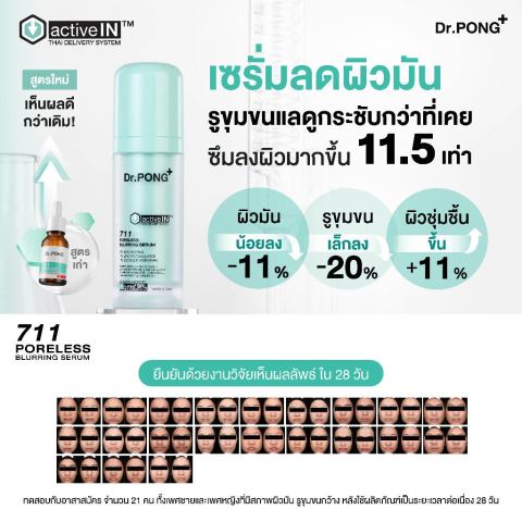 711 Poreless activeIN™ Series – ช่วยให้รูขุมขนดูกระชับ ผิวหน้าเรียบเนียน แต่งหน้าง่ายขึ้น ลดความมันส่วนเกินและปรับพื้นผิวให้เนียนขึ้นอย่างเห็นได้ชัด