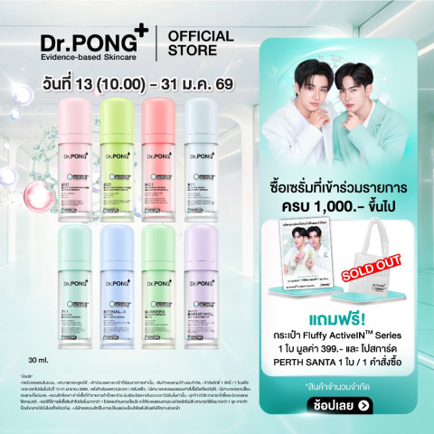 เมื่อซื้อเซรั่ม Dr.PONG activeIN™ Series ครบ 1,000 บาทขึ้นไป (คละสูตรได้ทั้งหมดที่ร่วมรายการ) รับฟรี โปสการ์ดลิมิเต็ด Dr.PONG x PERTHSANTA จำนวน 1 ใบ ต่อ 1 ใบเสร็จ พร้อมเงื่อนไขดังนี้:โปรโมชั่นวันที่ 13 (เวลา 10.00 น.) – 31 มกราคม 2569 เท่านั้น