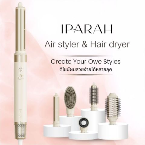 IPARAH P-500 ชุดไดร์ผม เครื่องม้วนผม 6 in 1 Hypersonic Air Shot Styler จาก IPARAH THAILAND ชุดเซ็ตจัดทรงผมครบจบในเครื่องเดียว เป่าแห้งไว จัดทรงได้หลากหลาย ทั้งผมตรง ผมลอน และเพิ่มวอลลุ่มอย่างเป็นธรรมชาติ พร้อมเทคโนโลยีไอออนช่วยลดไฟฟ้าสถิต ลดชี้ฟู ให้ผมดูเรียบสวยเงางามยาวนาน เหมาะสำหรับใช้งานทุกวันทั้งที่บ้านและพกพาไปเที่ยว