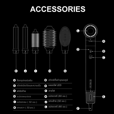 อุปกรณ์ในชุด (หัวจัดทรง)