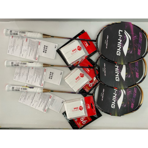 Ll-NlNGBLADEX (4U) ตัวท๊อปใหม่ล่าสุด ดีไซน์ สีทอง-ม่วง สวยเด่นสะดุดตา ไม้แท้จากบริษัท สำหรับสายบานลาห์และคนที่ชอบเกมเร็ว หน้าไม้ไว ตีสนุก คอนโทรลง่าย ก้านไม่แข็งจนเกินไป ใช้งานได้สบายมือทั้งเกมบุกและเกมรับ
