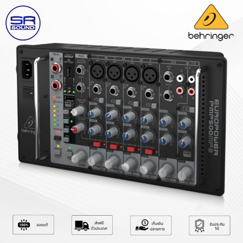BEHRINGER PMP500MP3 เพาเวอร์มิกเซอร์แอมป์ในตัวกำลังขับ 500 วัตต์ ที่รวม “มิกเซอร์ + ภาคขยาย + เครื่องเล่น MP3” ไว้ในเครื่องเดียว เหมาะสำหรับงานแสดงสด งานอีเวนต์ งานพูด/บรรยาย ห้องซ้อม หรือชุดเครื่องเสียงเคลื่อนที่ ให้เสียงดังชัด คุมง่าย น้ำหนักเบา และพร้อมใช้งานได้ทันที