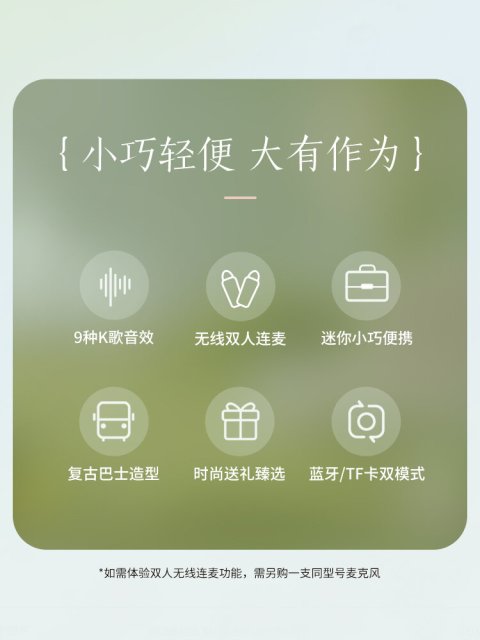 ลำโพงบลูทูธแบบพกพา Mini Karaoke Bus เครื่องเสียงสไตล์ย้อนยุคสุดเท่ ที่ผสานความสนุกของคาราโอเกะเข้ากับลำโพง Bluetooth แบบพกพา เหมาะทั้งใช้ในบ้าน งานปาร์ตี้เล็ก ๆ ทริปแคมป์ปิ้ง หรือกิจกรรมกลางแจ้ง ให้เสียงดังฟังชัด เติมบรรยากาศให้คึกคักได้ทุกที่ทุกเวลา