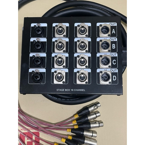 Stage box 16ch in12 out4 โซลูชันเชื่อมต่อสัญญาณเสียงสำหรับงานแสดงสดและงานติดตั้งที่ต้องการความเป็นระเบียบ ลดความยุ่งยากของการเดินสายหลายเส้น ให้การส่งสัญญาณได้อย่างมั่นใจด้วยการประกอบจากสายมัลติคอร์ Dynacom 16ch และใช้หัวคอนเนคเตอร์ Lidge ทั้งชุด เพื่อความแน่นหนาและความทนทานในการใช้งานจริง
