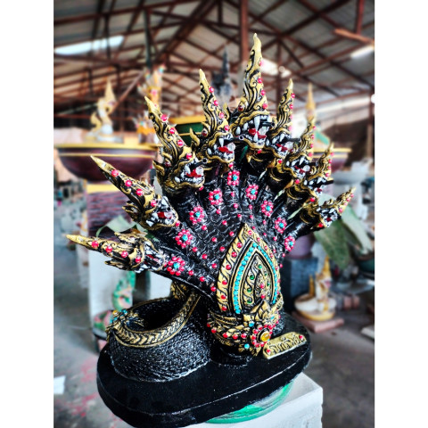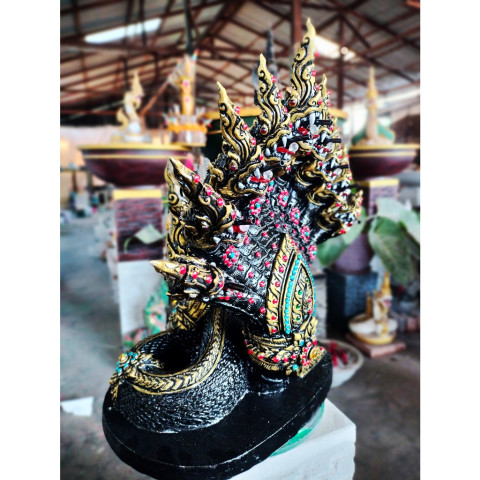 ตามความเชื่อ “พญานาค” คือสัตว์กึ่งเทพผู้มีอิทธิฤทธิ์ อาศัยในเมืองบาดาล ปกปักรักษาสายน้ำ และเป็นสัญลักษณ์ของผู้ใฝ่รู้ ผู้พร้อมเข้าหาพระธรรม โดยพญานาคแบ่งเป็น 4 ตระกูล ได้แก่สีทอง สีเขียว สีรุ้ง และตระกูลกัณหาโคตมะ (สีดำ) ซึ่งรุ่นนี้มาในโทนสีดำที่ให้ความเข้มขลังและทรงพลัง เหมาะกับสายบูชาและสายแต่งสวนที่ต้องการงานเด่นๆ แบบมีความหมาย