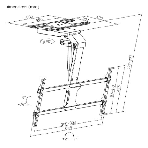 ประเภท: Motorized TV Ceiling Mount (ขายึดทีวีติดเพดานแบบมอเตอร์)
