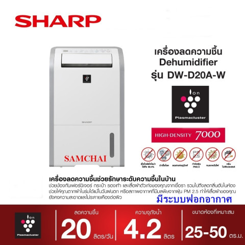 SHARP เครื่องลดความชื้น รุ่น DW-D20A-W (สีขาว) ตัวช่วยจัดการความชื้นสำหรับบ้านและคอนโดอย่างมีประสิทธิภาพ ลดความอับชื้น ลดโอกาสเกิดเชื้อรา พร้อมระบบ Plasmacluster 7000 ไอออน เพื่ออากาศที่สดชื่นยิ่งขึ้น เหมาะกับห้องขนาด ไม่เกิน 50 ตร.ม. และใช้งานได้ทั้งโหมดลดความชื้นและโหมดเป่าผ้าในร่ม ตอบโจทย์ช่วงหน้าฝนหรือวันที่มีฝุ่น PM 2.5