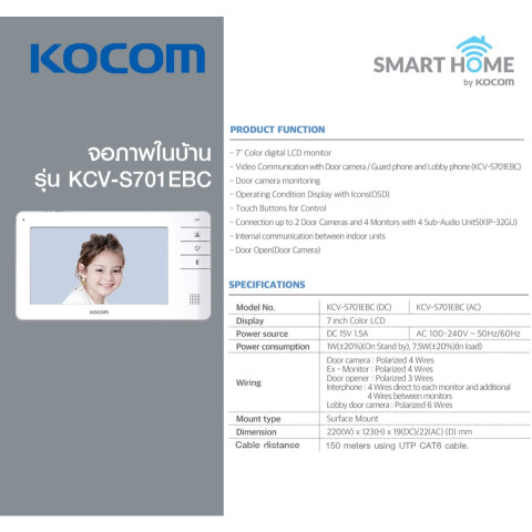 จอในบ้าน KCV-S701EBC (จอ LCD 7 นิ้ว)