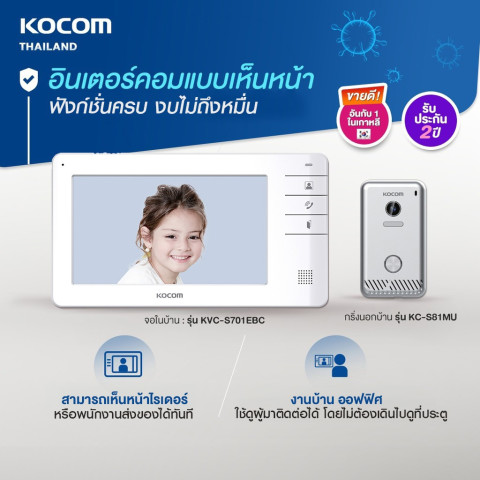 (ขายดีที่สุด) Kocom รุ่น 701 EBC VDO Door Phone กริ่งประตูไฟฟ้ามีกล้องพร้อมจอ 7 นิ้ว ฟังก์ชันครบวงจร คุณภาพนำเข้าจากเกาหลีใต้ ในราคา 10,980.21 บาท เหมาะสำหรับบ้าน คอนโด ออฟฟิศ และอาคารที่ต้องการเพิ่มความปลอดภัยและความสะดวกในการรับแขกหน้าบ้าน