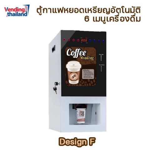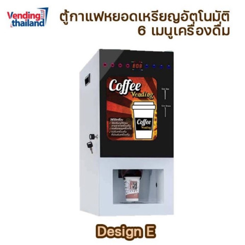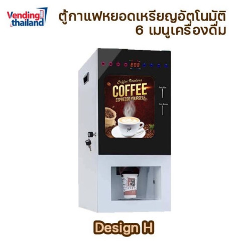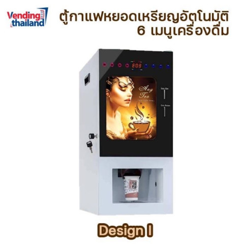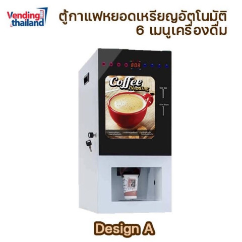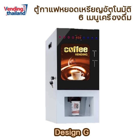 ตู้กาแฟหยอดเหรียญ รุ่นใหม่ล่าสุด 3 ช่องวัตถุดิบ ทำได้ 6 เมนู (Design G)